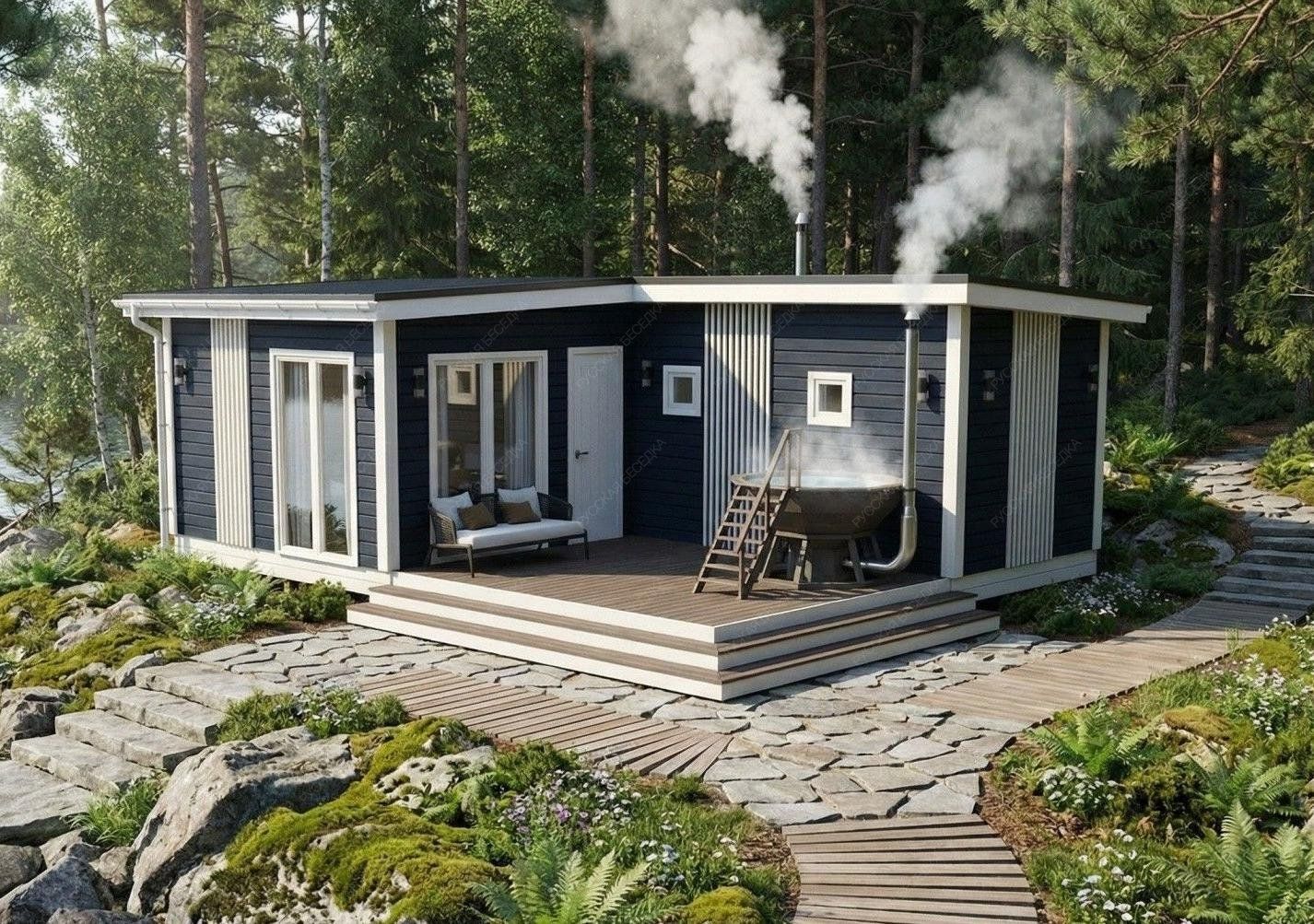 Огнебиозащита (бесцветная) или декоративный деревозащитный состав "Здоровый дом" (цвет на выбор) – нижняя обвязка, лаги, пол и цокольная доска.