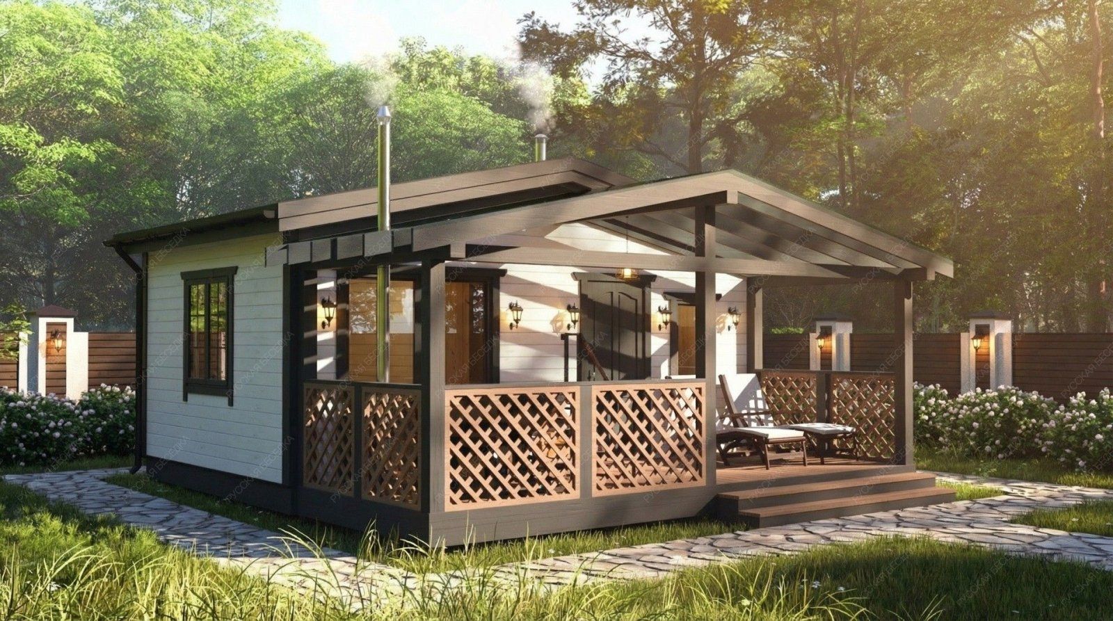 Огнебиозащита (бесцветная) или декоративный деревозащитный состав "Здоровый дом" (цвет на выбор) – нижняя обвязка, лаги, пол и цокольная доска.