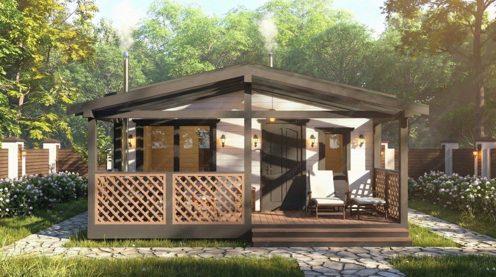 Вся конструкция обрабатывается декоративным деревозащитным составом в 2 слоя - при необходимости дополнительно.