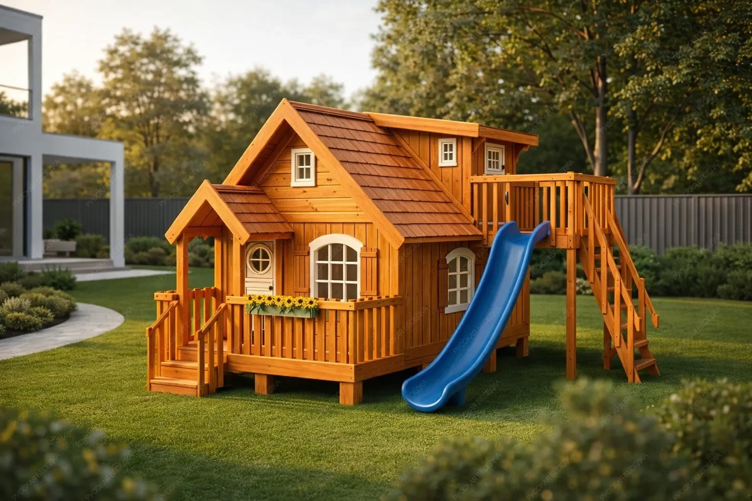 Пока взрослые заняты работой в саду, дети могут весело проводить время в специально оборудованных детских домиках из дерева. Эти домики станут центром внимания малышей, ведь они созданы с учетом всех их потребностей и интересов. Детские домики можно оформить по-разному: в виде корабля для маленьких мореплавателей, дворца для принцесс, пиратской базы или лаборатории для юных исследователей. При создании детских домиков важны не только эстетика и дизайн, но и безопасность. Поэтому сотрудники компании «Русская беседка» особенно ответственно подходят к подбору материалов и проектированию детских домиков, обеспечивая удобство и безопасность ваших детей во время игры. Деревянные домики обладают множеством преимуществ: в отличие от пластиковых и металлических конструкций древесина не нагревается на солнце и не выделяет вредных химических веществ, выглядит натурально и естественно. Качественные покрытия и пропитки делают домики безопасными и долговечными. Компания «Русская беседка» создает оригинальные и надежные детские домики, которые принесут радость и удовольствие вашим детям!