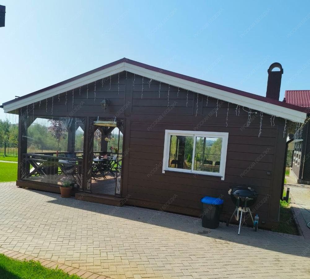 Имитация бруса 16×135 мм внутри, имитация бруса 21×135 мм снаружи.