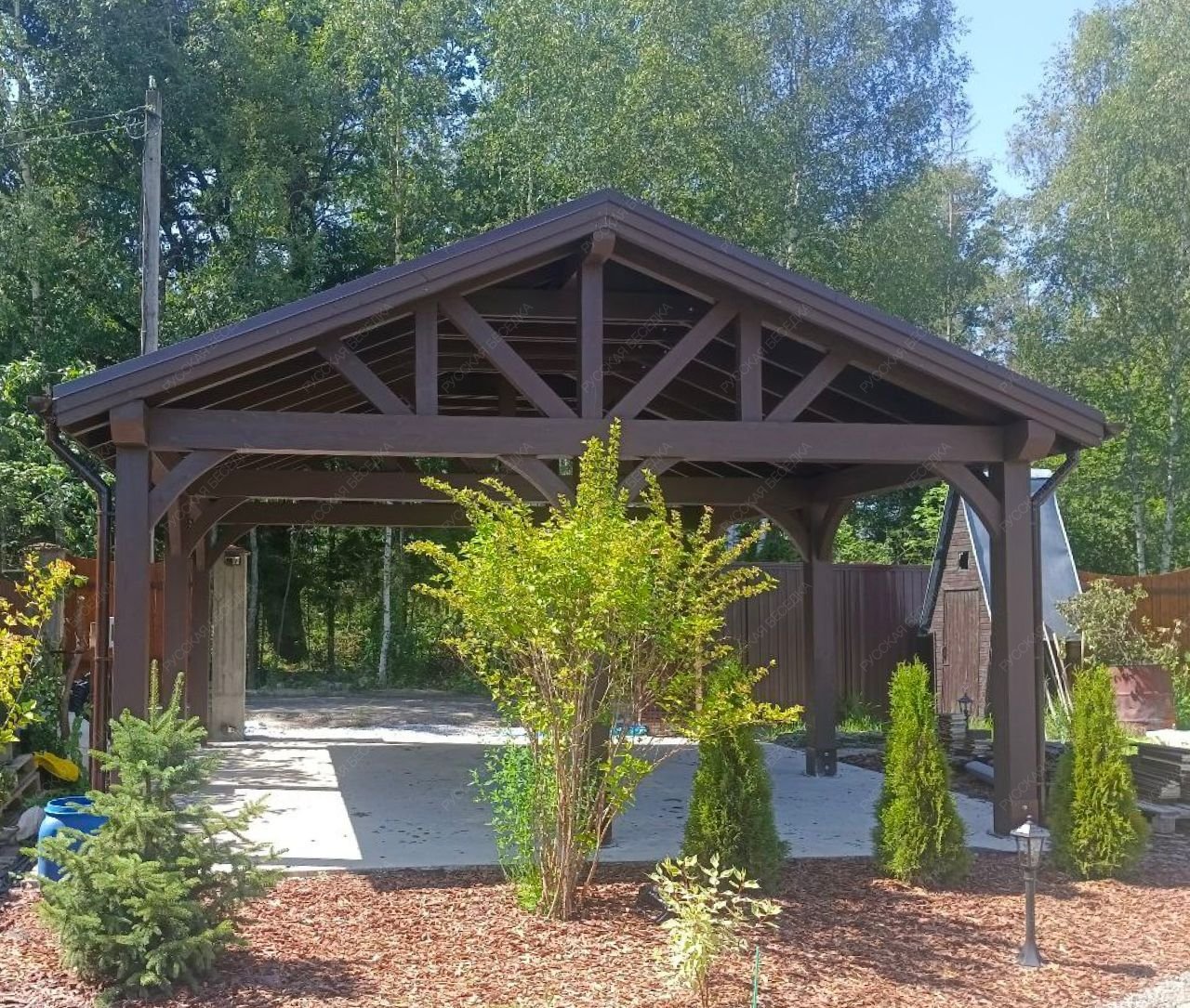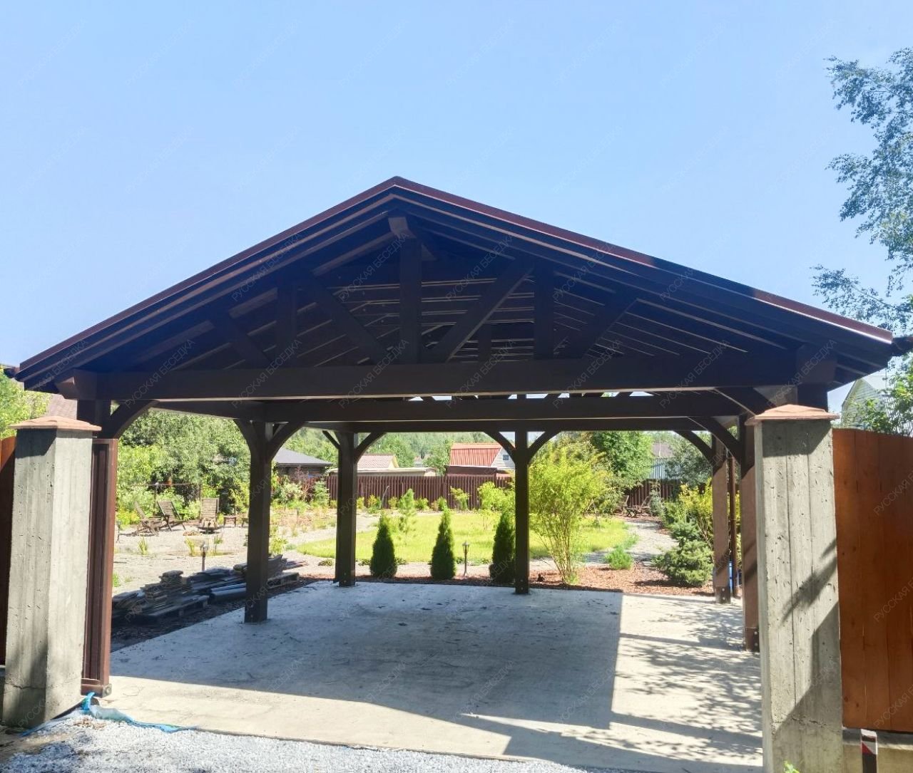 Навес из дерева послужит отличным парковочным местом для одного или нескольких автомобилей.