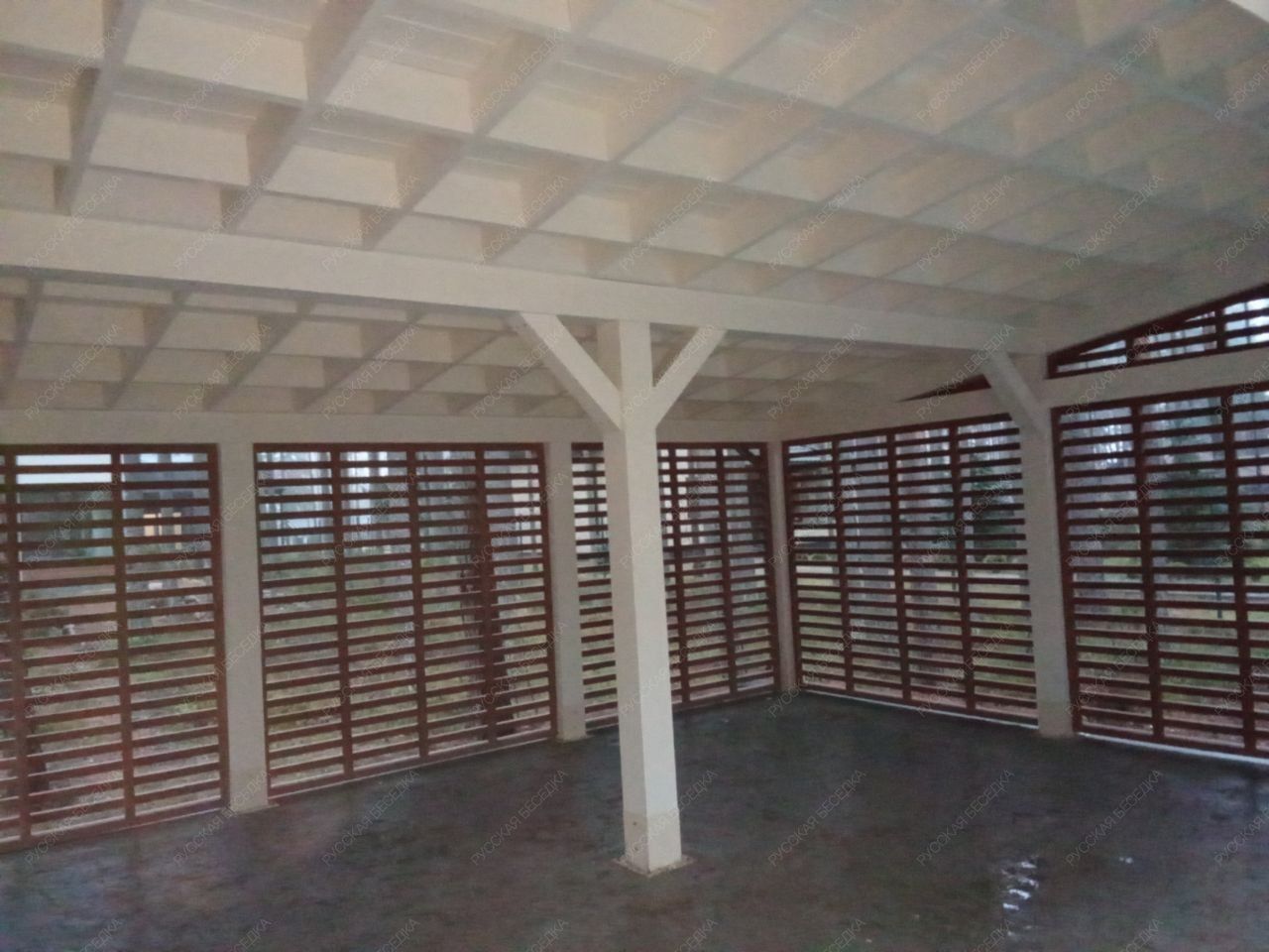 Навес из дерева послужит отличным парковочным местом для одного или нескольких автомобилей.