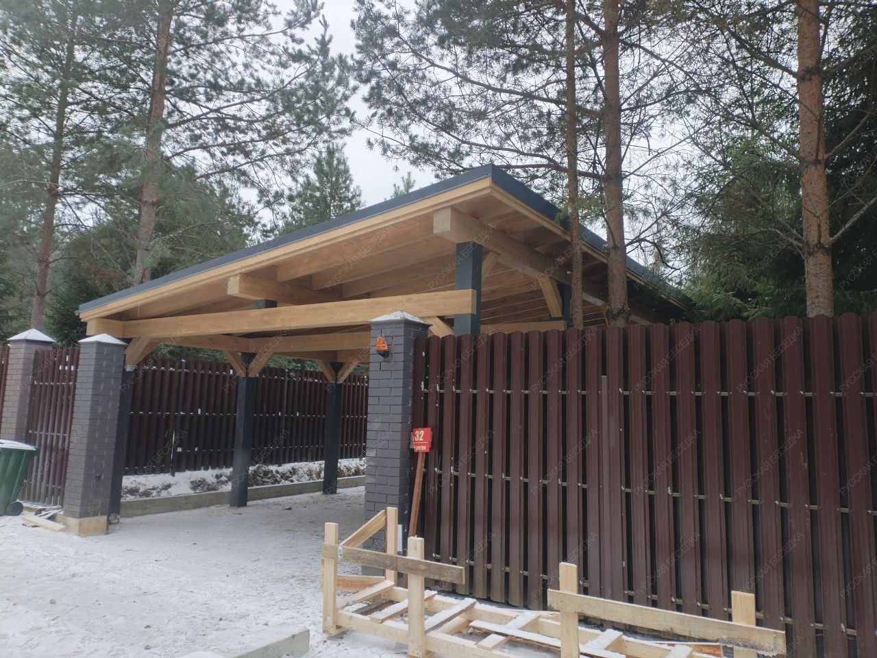 Навес из дерева послужит отличным парковочным местом для одного или нескольких автомобилей.
