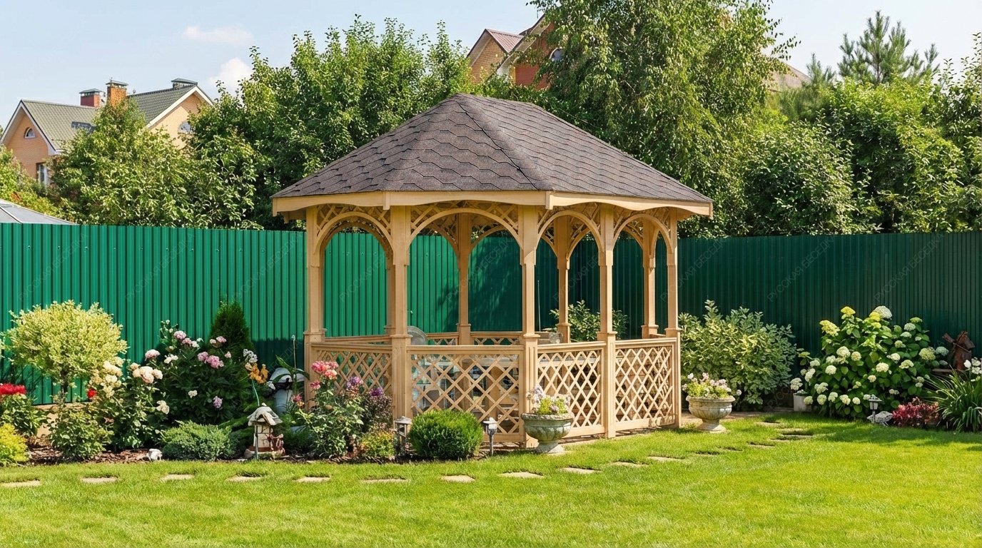 Современный ландшафтный дизайн и беседки - центральные элементы загородного участка. Беседка должна размещаться в таком месте участка, где вам будет комфортно находиться, а также она должна отвечать своему назначению и притягивать взгляды. Беседка является уникальным строением, с ее помощью можно отдохнуть за чашечкой кофе, укрыться от знойного солнца или провести шумный праздник в кругу семьи и друзей.