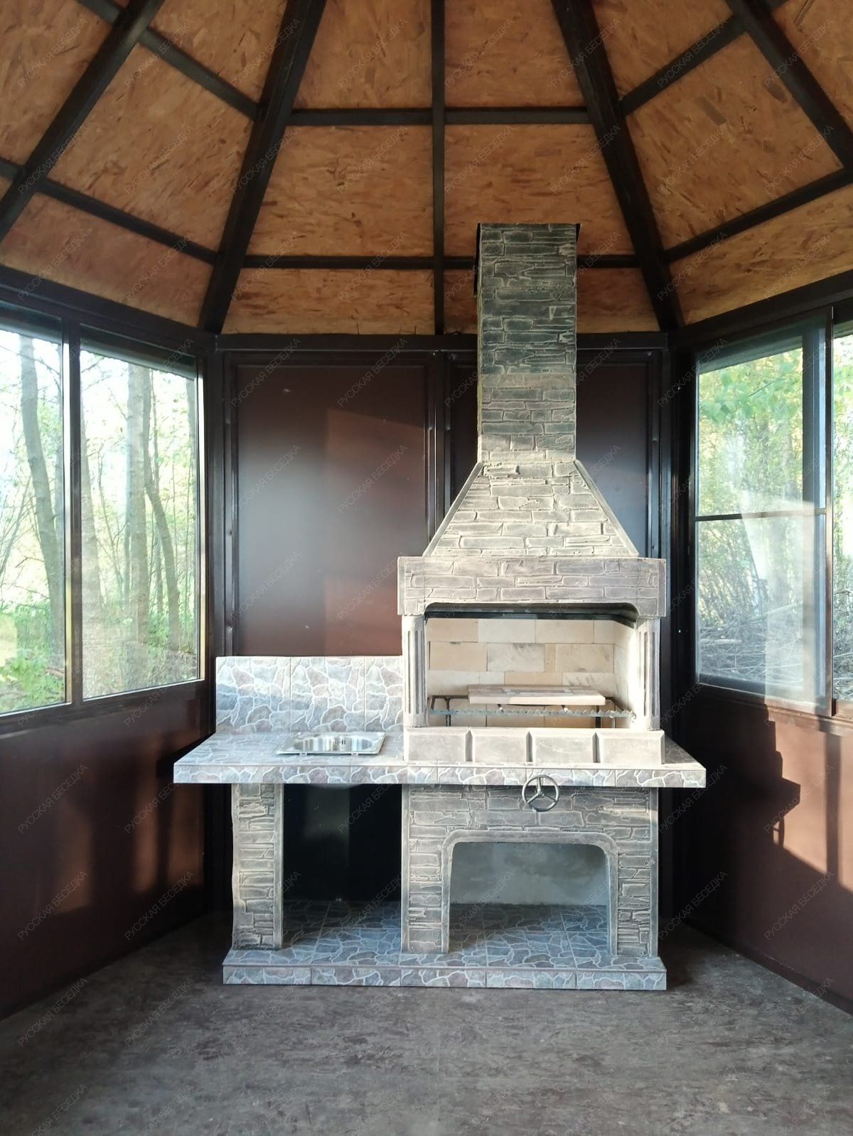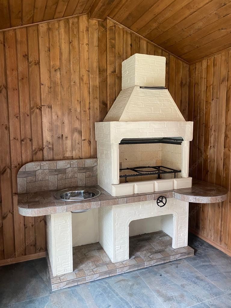 Барбекю-комплекс сделан из армированного огнеупорного бетона с добавлением керамзита.