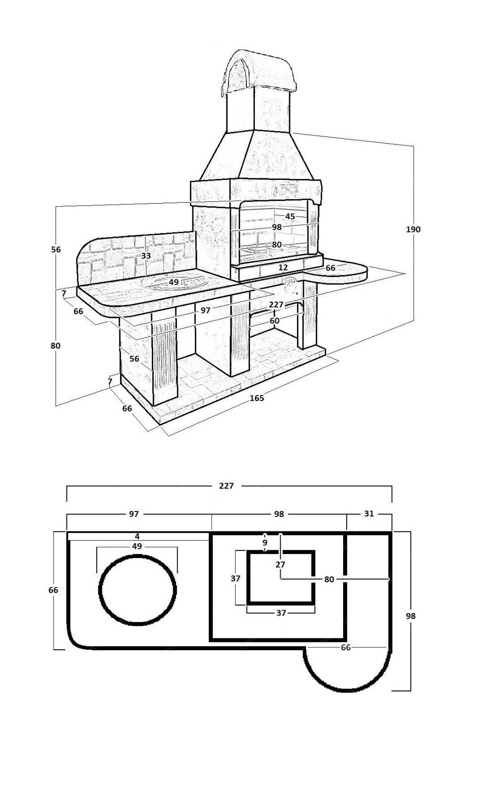Средняя по размерам, но очень функциональная модель печи идеальна для небольшого дачного двора, а также для летней кухни. Топится эта печь-барбекю дровами или углем.