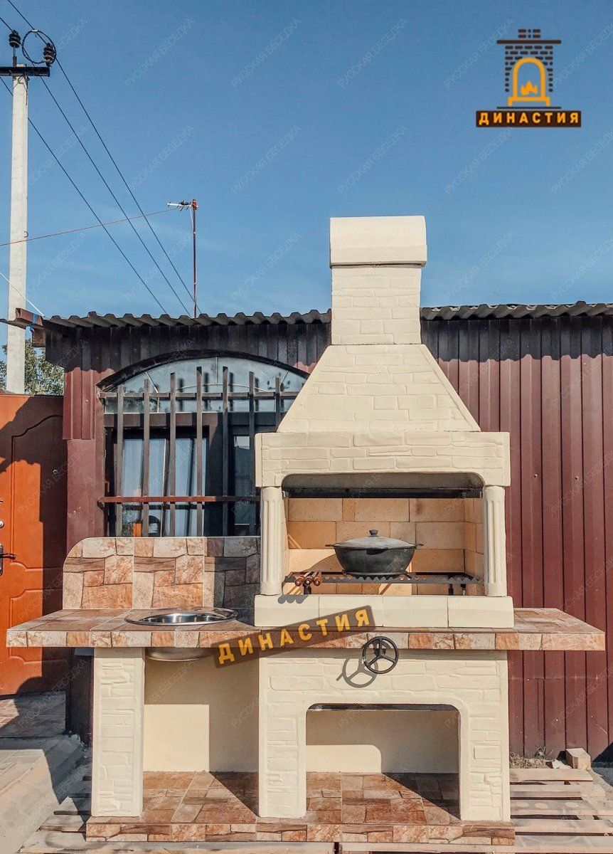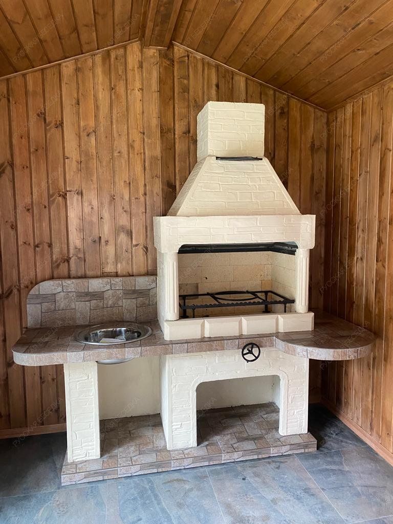 На одном крыле уличной печи-барбекю есть возможность для установки полноценной раковины с дополнительным свободным краем столешницы. На ней можно готовить, ставить помытую или грязную посуду. Внизу, под раковиной, тоже есть свободное пространство для хранения подручных средств или овощей, а также для установки мусорного ведра — вы можете выбирать свой вариант.