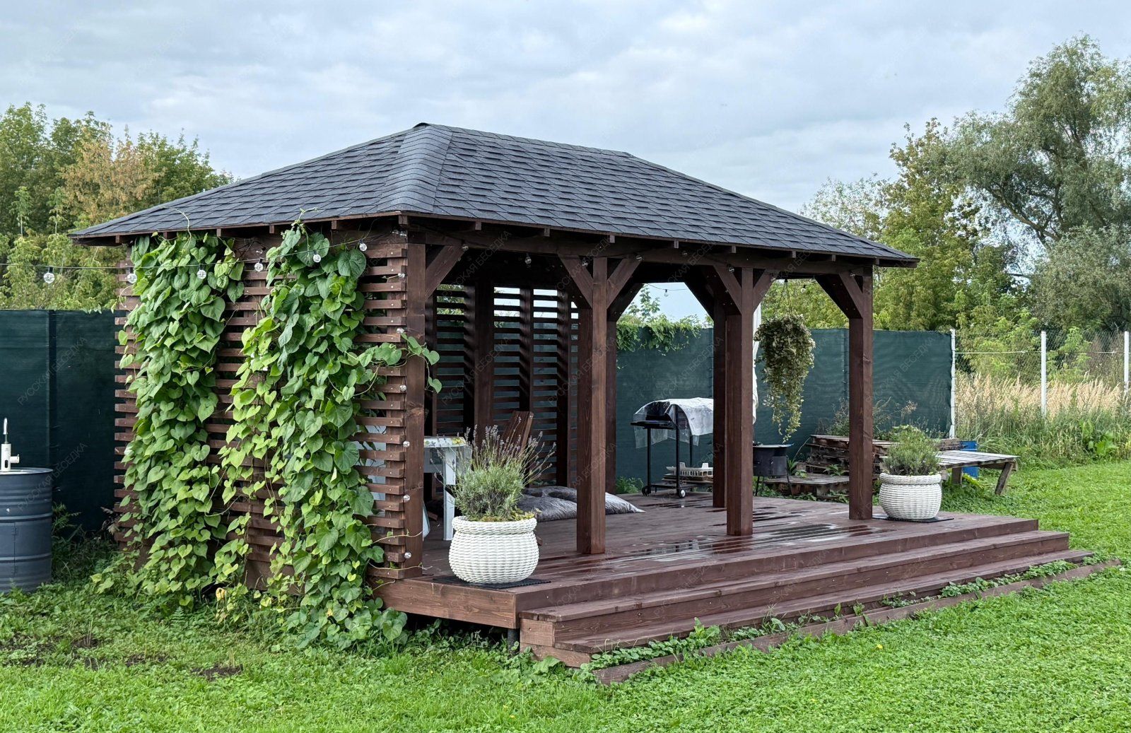 Беседка выполненная из лучших пород древесины, прослужит долгие годы и не потребует особого ухода и обслуживания. Специальные лакокрасочные материалы которые мы используем, предотвратят старение, гниение и заражение грибком конструкции кухни. Используемая огнебиозащита образует полупрозрачное полуматовое покрытие, стойкое к влаге, УФ-излучению, перепадам температуры и другим атмосферным воздействиям.