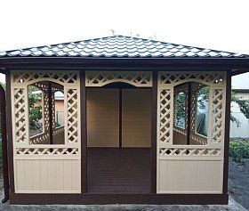 Беседка выполненная из лучших пород древесины, прослужит долгие годы и не потребует особого ухода и обслуживания. Специальные лакокрасочные материалы которые мы используем, предотвратят старение, гниение и заражение грибком конструкции кухни. Используемая огнебиозащита образует полупрозрачное полуматовое покрытие, стойкое к влаге, УФ-излучению, перепадам температуры и другим атмосферным воздействиям.