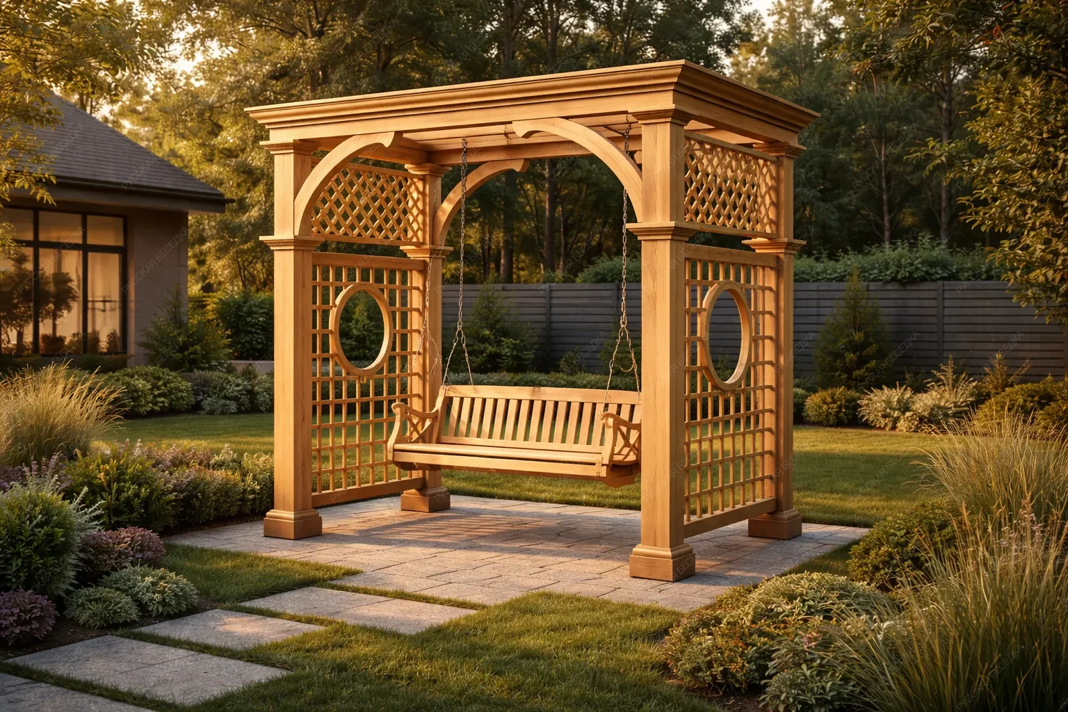 Качели — это незаменимый элемент для создания уютной зоны отдыха на даче. Они позволяют наслаждаться свежим воздухом и красотой природы, создавая атмосферу уюта и релаксации Наши качели отличаются надежностью и комфортом. Они выполнены из качественных материалов, что гарантирует их долговечность и устойчивость к погодным условиям. Эти качели идеально вписываются в ландшафт вашего участка, добавляя ему стильный и современный акцент. Они станут любимым местом для всей семьи, где можно провести время в общении и отдыхе. Создайте на своей даче уголок спокойствия и уюта с нашими садовыми качелями, которые подарят вам множество приятных моментов на свежем воздухе!