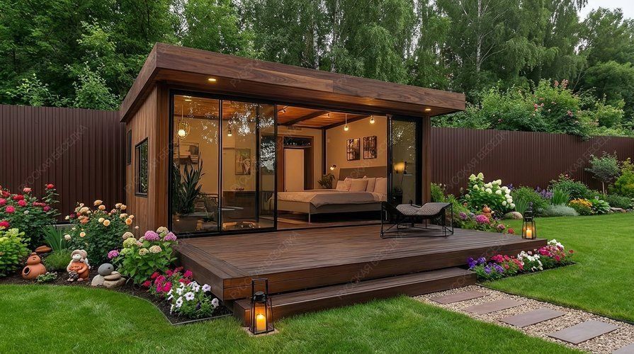 Садовые дома из хвойных пород древесины — это идеальное решение для обустройства загородного участка. Просторные и уютные, они отлично подходят для летнего проживания, выполняя функцию гостевого дома или компактной дачи, где можно с комфортом проводить тёплые месяцы вдали от городской суеты. В основе конструкции — массив сухой строганной доски камерной сушки и клееный брус, прошедшие тщательную обработку. Сорт древесины АВ по лицевой стороне обеспечивает чистую, эстетичную поверхность с благородной текстурой натурального дерева. Хвойные породы (ель и сосна) создают внутри особый микроклимат: воздух наполняется лёгким ароматом смол, а естественная способность древесины дышать поддерживает комфортный уровень влажности даже в жаркие дни. Такие постройки органично вписываются в любой ландшафт, не требуя массивного фундамента и сложного ухода. Внутреннее пространство может быть организовано по собственному усмотрению: от зоны отдыха до компактной спальни или столовой. Это полноценное жилое пространство, где каждая деталь продумана для того, чтобы пребывание на свежем воздухе было максимально комфортным. Капитальность конструкции, обеспеченная качественными материалами, гарантирует долгие годы эксплуатации. Садовый дом становится не просто постройкой, а любимым местом встреч с близкими и уединённого отдыха на лоне природы.