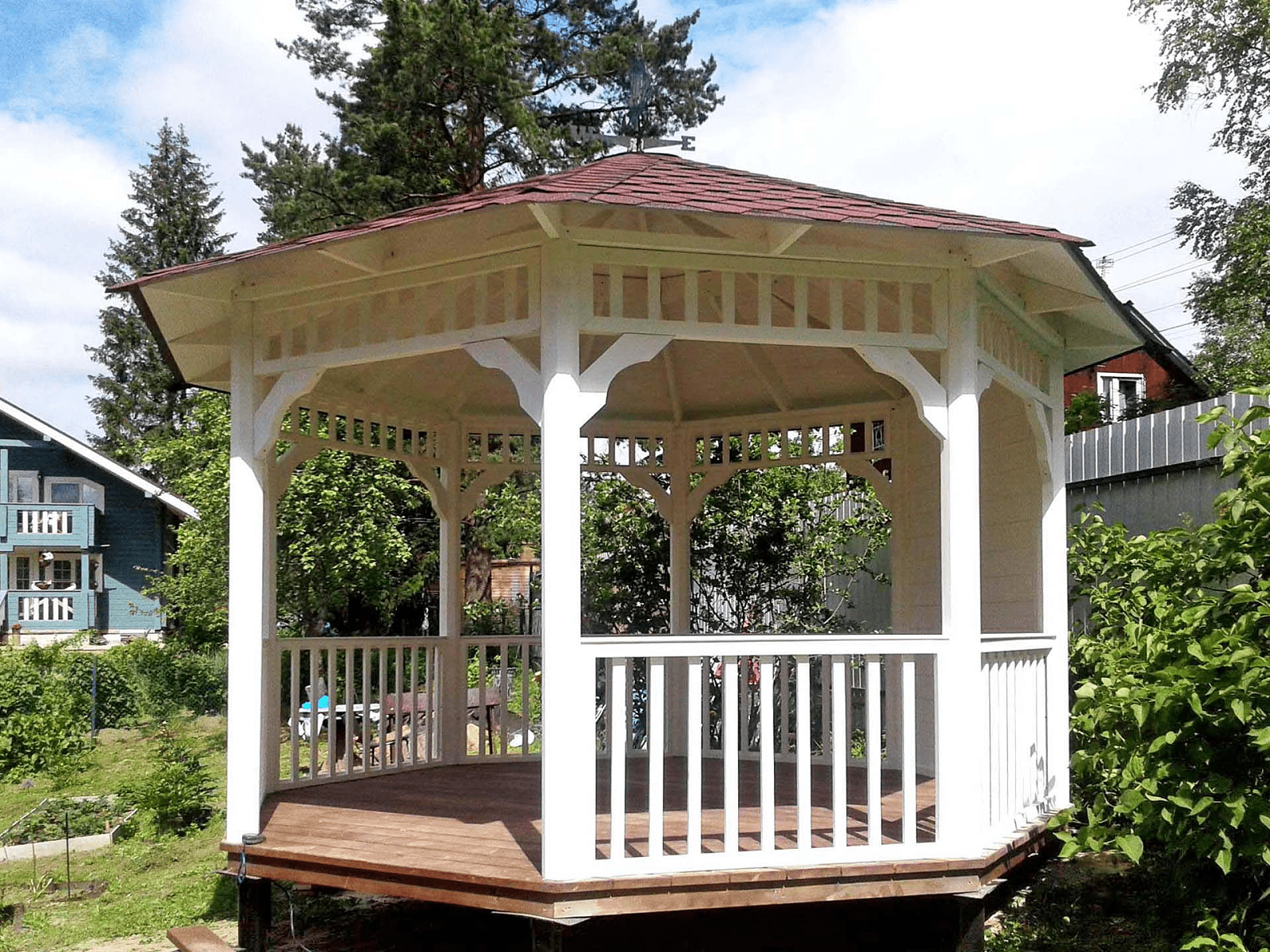 Как любой архитектурный элемент беседка должна отвечать трем основным требованиям – надежность, функциональность и красота. В зависимости от предпочтений владельцев участка и особенностей ландшафта будет определяться конфигурация строения. Наши специалисты помогут с выбором модели беседки, ее конструкцией и дизайнерским решением. Индивидуально для Вас мы разработаем визуализацию и проект конструкции, котрая станет центром внимания вашего участка.